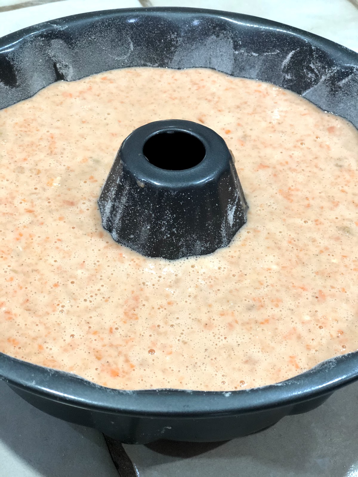 繼續加入所有細碎鳳梨及紅蘿蔔絲攪拌均勻。